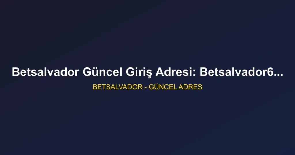 Betsalvador Direkt Giriş: Betsalvador632 Adresi Yayında